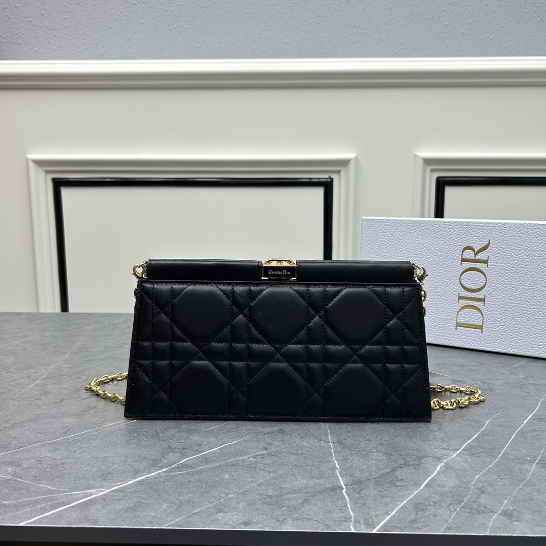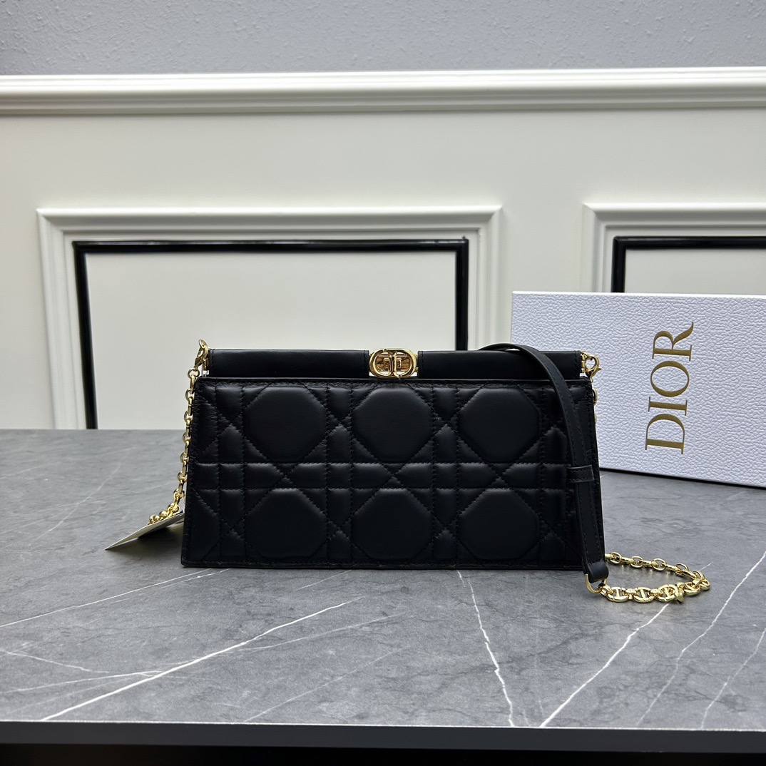 Dior Caro Colle Noire Clutch with Chain Cannage Lambskin Black 10A Mirror Version