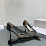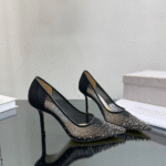 Jimmy Choo Black Mesh Pointed Stiletto Heels Slide Sandal
