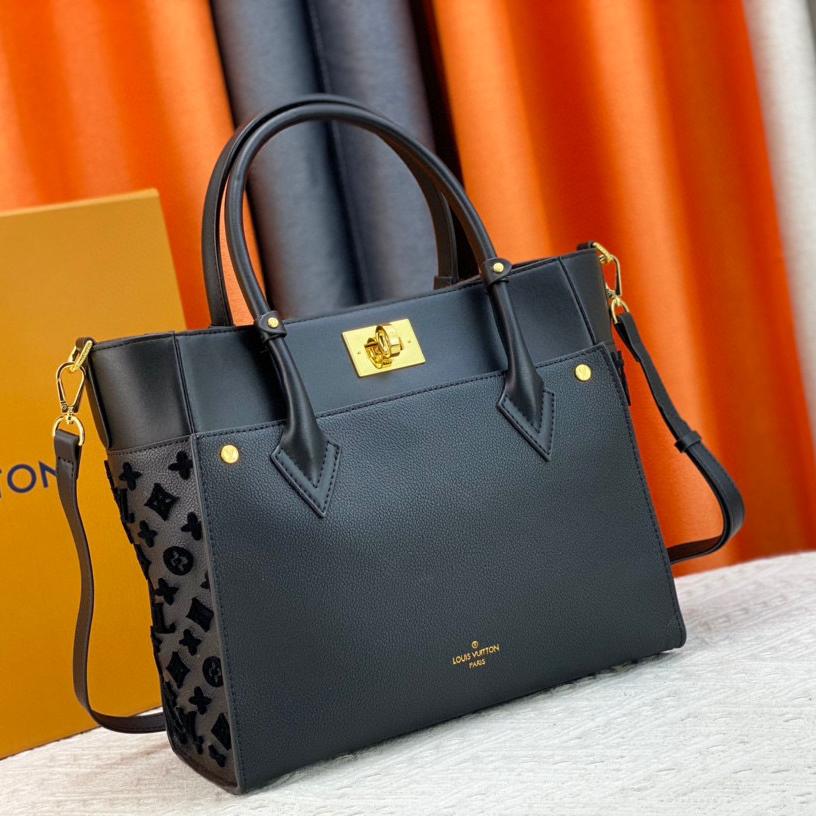 Louis Vuitton LV On My Side MM Black Leather Shoulder Bag Handbag